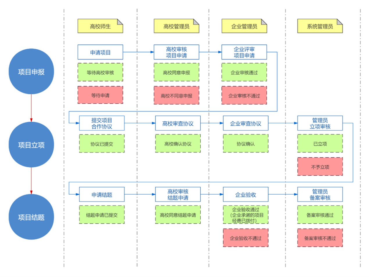 5.项目申报后,请及时关注高校和企业审核进展。企业审核通过的项目,高校与企业应签署合作协议,明确项目内容、资助形式及时间、预期成果、项目周期和验收标准等事项。合作协议由高校与企业签署,协议盖章必须为高校、企业公章(或合同章)。推荐使用项目提供的合作协议模板(“项目合作协议”页面或“产学合作—常用文件下载”页面下载项目协议模板),协议模板未尽事项,双方可签订补充协议。如另行拟定合作协议,须涵盖协议模板所列主要内容。合作协议由项目负责人上传至项目平台,并须经企业确认。请及时关注协议确认进度,以免影响项目立项。
