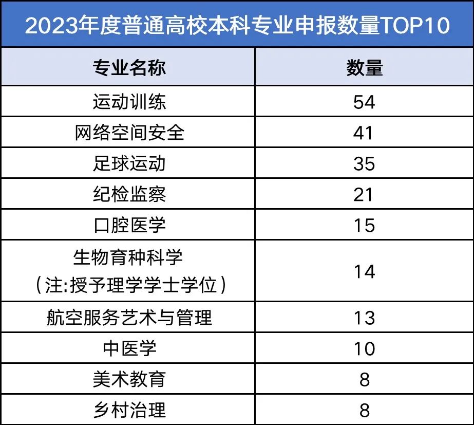 近日,教育部官网了发布《2023年度普通高等学校本科专业申报材料公示》,本年度专业申报工作就此结束。据统计,本次申报的高校共有364所,各高校申报的本科专业合计525个,对比2022年度增加42个专业。