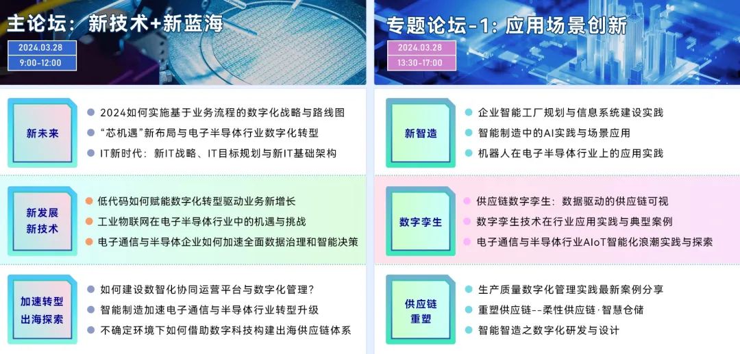 本届峰会以“智驱 启新”为主题,汇集300+来自电子通信与半导体行业知名企业高管、CIO、信息化与数字化负责人、优秀信息化解决方案供应商,重点聚焦供应链建设、智能工厂建设、数字研发、低代码、数字孪生、出海探索等诸多热点议题,通过演讲分享+圆桌对话+案例解读+展台展示等多种方式展开,多维解读行业在新一轮发展机遇之下,企业如何优先进行战略布局,为企业转型升级绘制最佳路径。