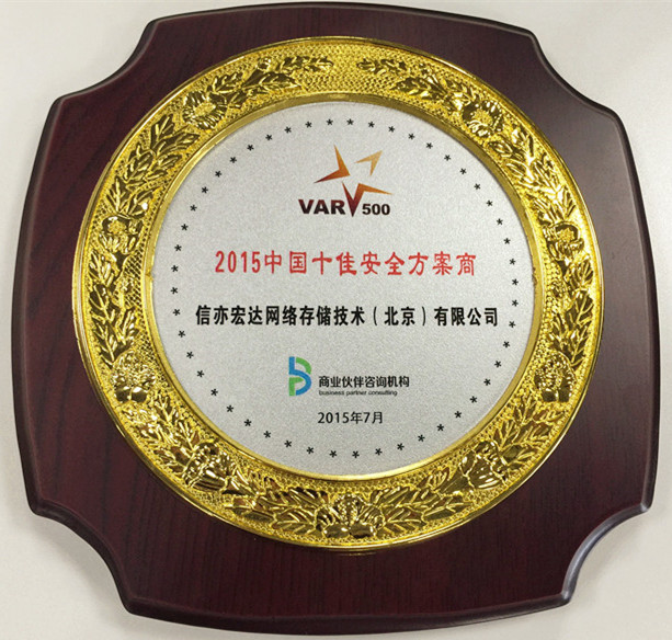在此次盛会最后的VAR500颁奖典礼环节中,主办方对2015年度方案商500强中的优秀企业代表进行了颁奖,信亦宏达荣获2015中国方案商500强评选《十佳安全方案商》称号。