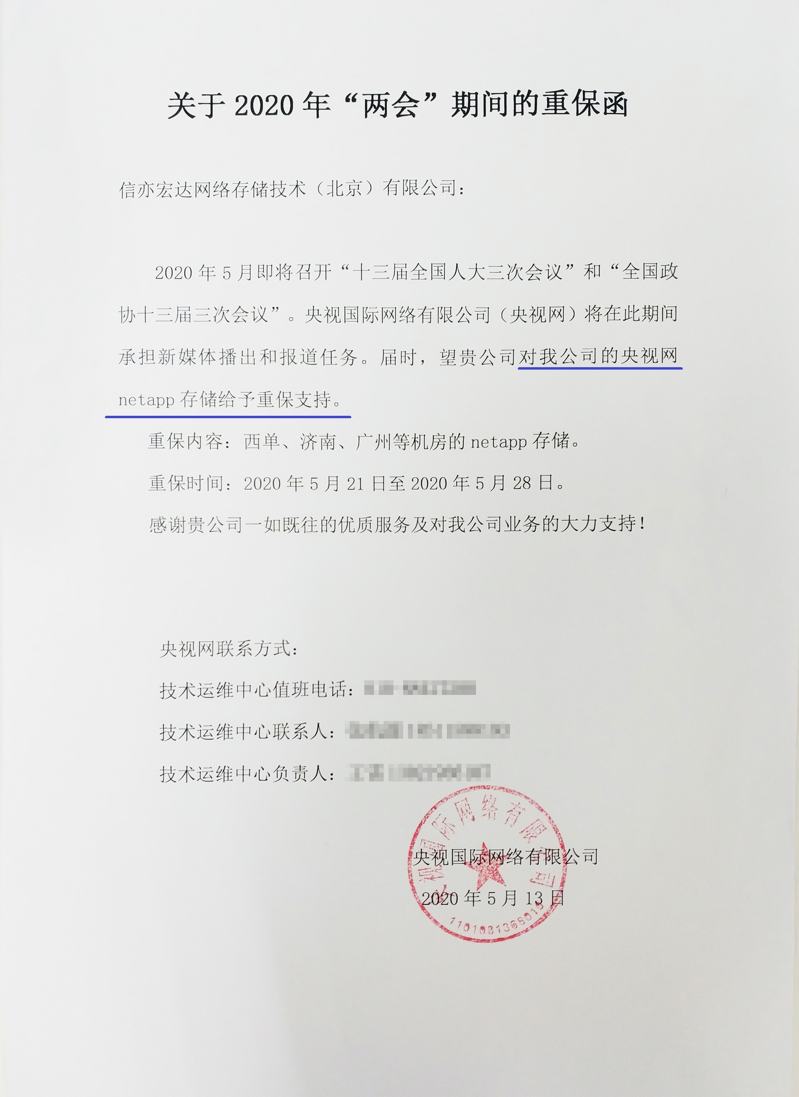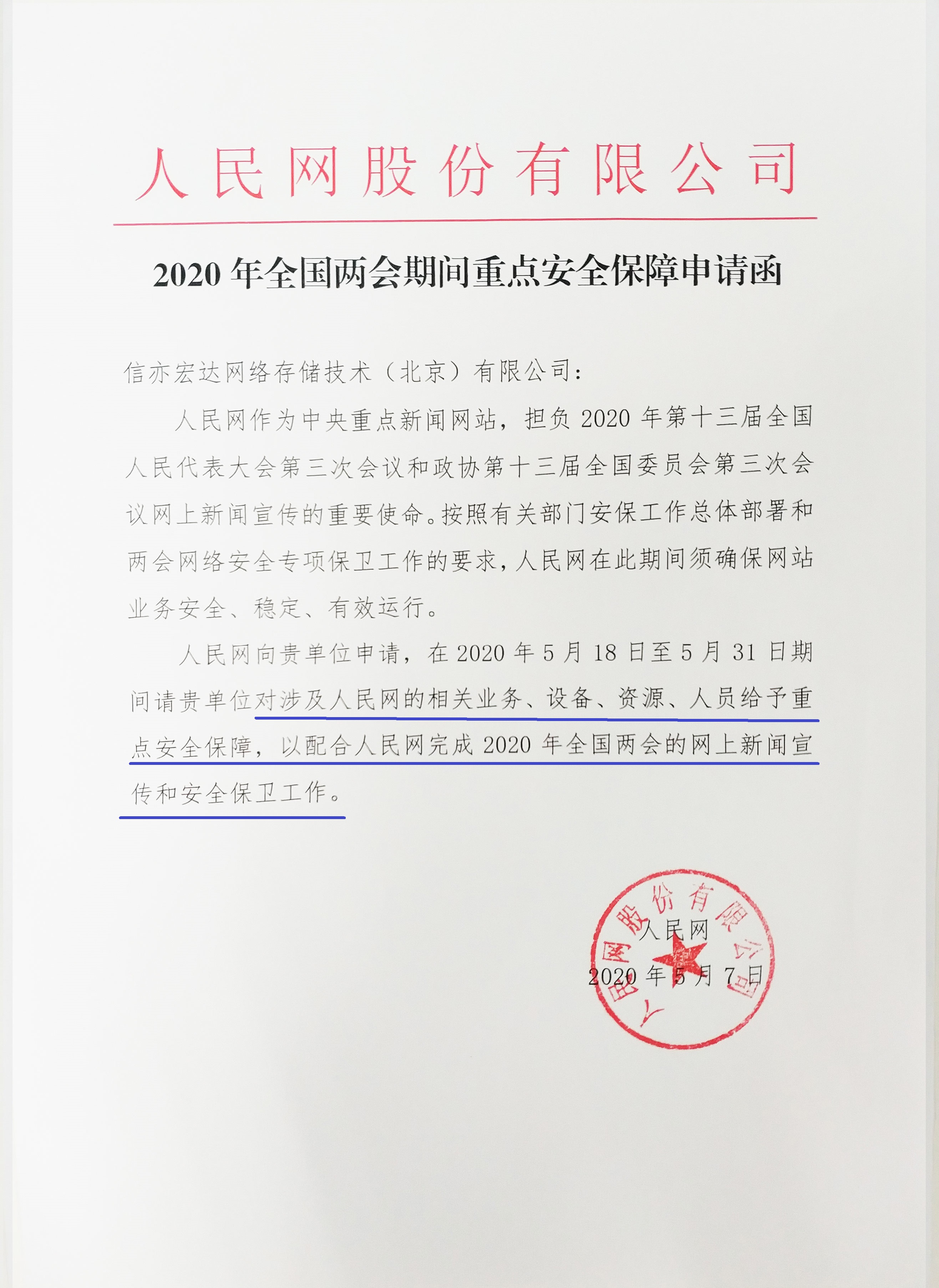 最终信亦宏达凭借专业、高效的运维技术,顺利完成两会重保任务!
