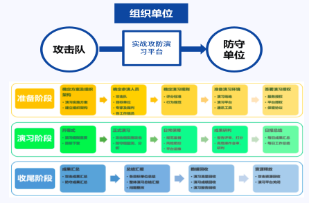 实施阶段:1.安全事件 2.演练执行 3.过程及结果记录 4.结果及过程评估 5.观摩及上级指导