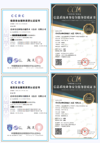 • 信息安全服务资质认证证书(信息系统安全运维二级)