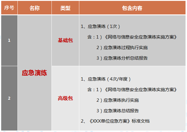 提供服务类型:安全运营服务、评估服务、培训服务、规划服务、运维等服务