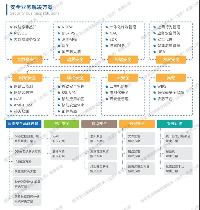 信亦宏达与数十家国内外知名安全厂商有着广泛的合作关系,可提供下一代防火墙、大数据分析、漏洞扫描、安全攻防实训平台、网络准入、邮件安全等各类安全产品,建立从终端到云端全方位安全防御体系。同时设有专门的安全产品部,可为您提供定制专业化安全解决方案,快速建立起“安全防护网”。