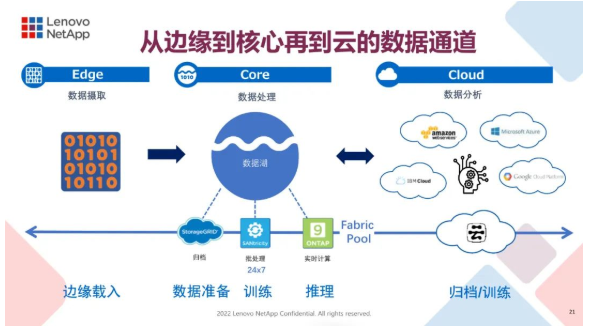 AI作为当下十分流行的话题,受到不同行业的关注。许多企业都在通过AI进行自主学习。AI业务中,大量数据需要从边缘端获取,流动到核心数据中心进行数据准备、训练、推理等一系列处理环节,再被分散到云端进行归档分析。基于丰富、完善的产品线,联想凌拓能够打通从边缘到核心再到云的数据流动管道,让数据更好地流动,助力企业深入挖掘数据价值。同时,联想凌拓帮助客户解决了在开发流程及基础支撑架构搭建中的潜在问题,实现了更简便、快速的搭建流程,让客户能够更加专注业务本身。