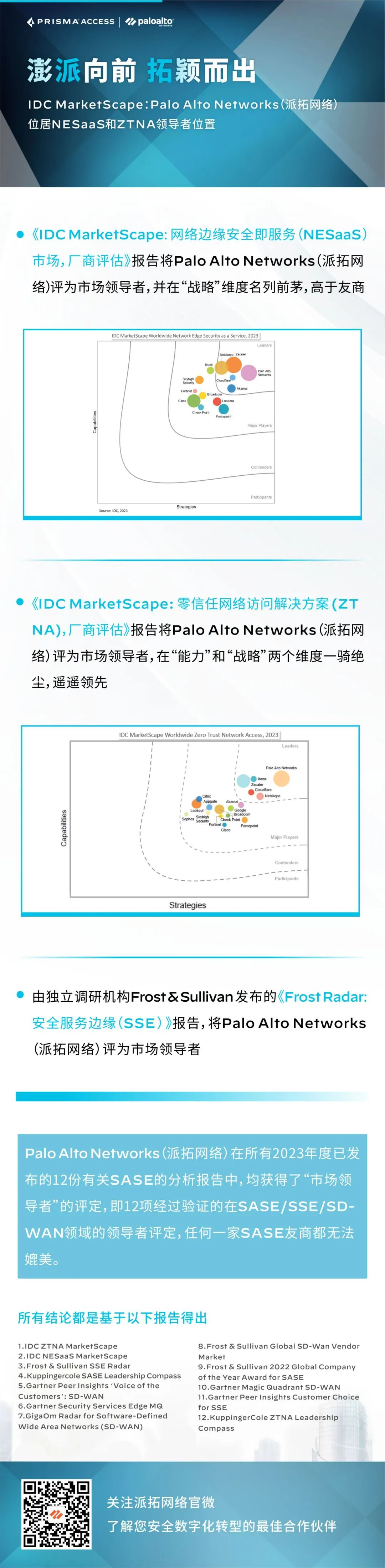 是荣耀,是期待。Palo Alto Networks(派拓网络)在最新的IDC网络边缘安全即服务(NESaaS)和零信任网络接入(ZTNA)MarketScape报告中位居绝对领导者位置。