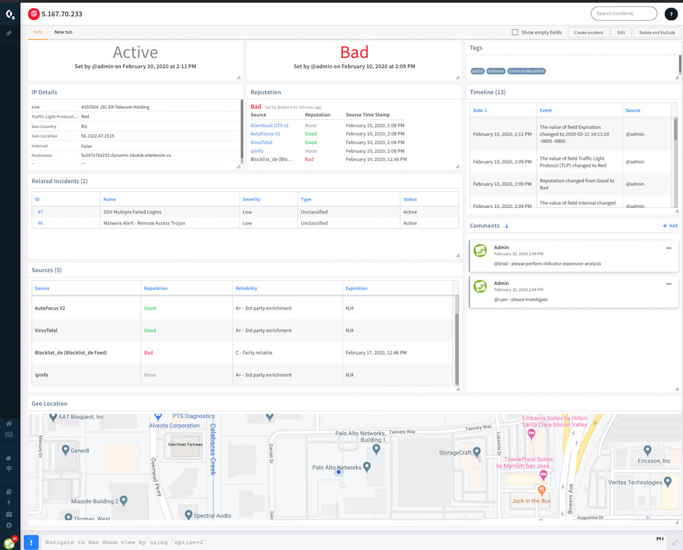 3.通过实时协作提高安全运营效率:通过内置聊天运营与命令行界面的虚拟战室,促进团队之间的调查,实时执行整个产品栈中的命令。