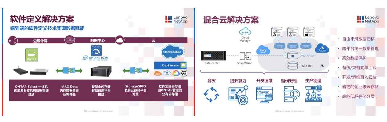 企业上云并在混合多云的世界中发展已成大势所趋。通过采用ONTAP数据管理软件,联想凌拓提供的产品及解决方案均适用于混合多云环境,并在此环境中让数据自由流动,进一步释放数据价值。