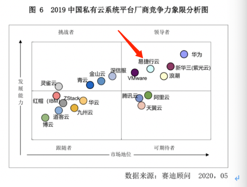 7月29日,直属于工业和信息化部中国电子信息产业发展研究院的中国首家上市IT咨询企业赛迪顾问发布了《2020中国私有云系统平台市场研究》白皮书(以下简称“白皮书”),在此次发布的白皮书中,赛迪顾问在业内首次定义新一代私有云,提出新一代私有云两种主流模式,并从发展能力和市场地位两大维度出发,发布了“中国私有云系统平台厂商竞争力象限分析图”,易捷行云EasyStack位列领导者象限,这也是唯一一家进入领导者象限的创新型企业和中国专业私有云企业。赛迪顾问表示:易捷行云作为专业的私有云提供商,在金融领域表现突出,2019年完成中国电子CEC战略投资后开始发力政府市场。