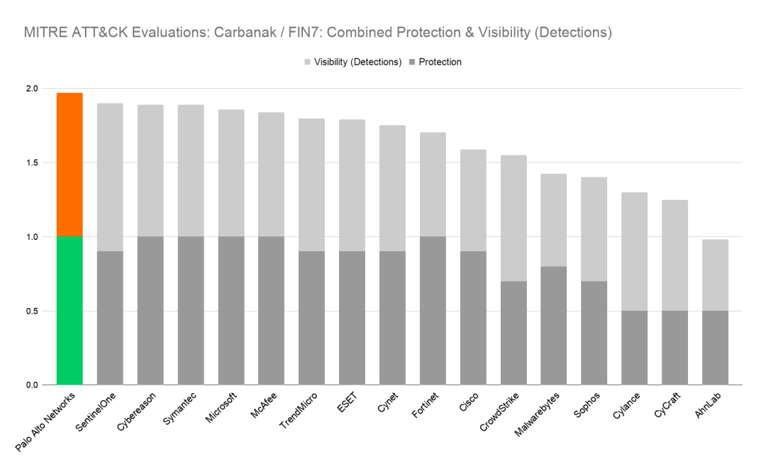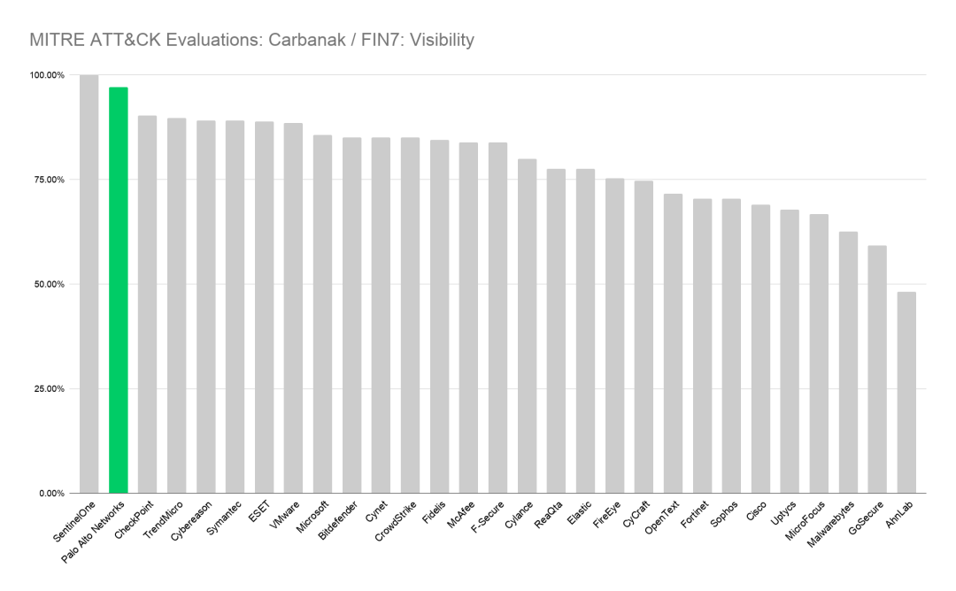 Cortex XDR 提供了第二高的总体可视性和所有供应商中
