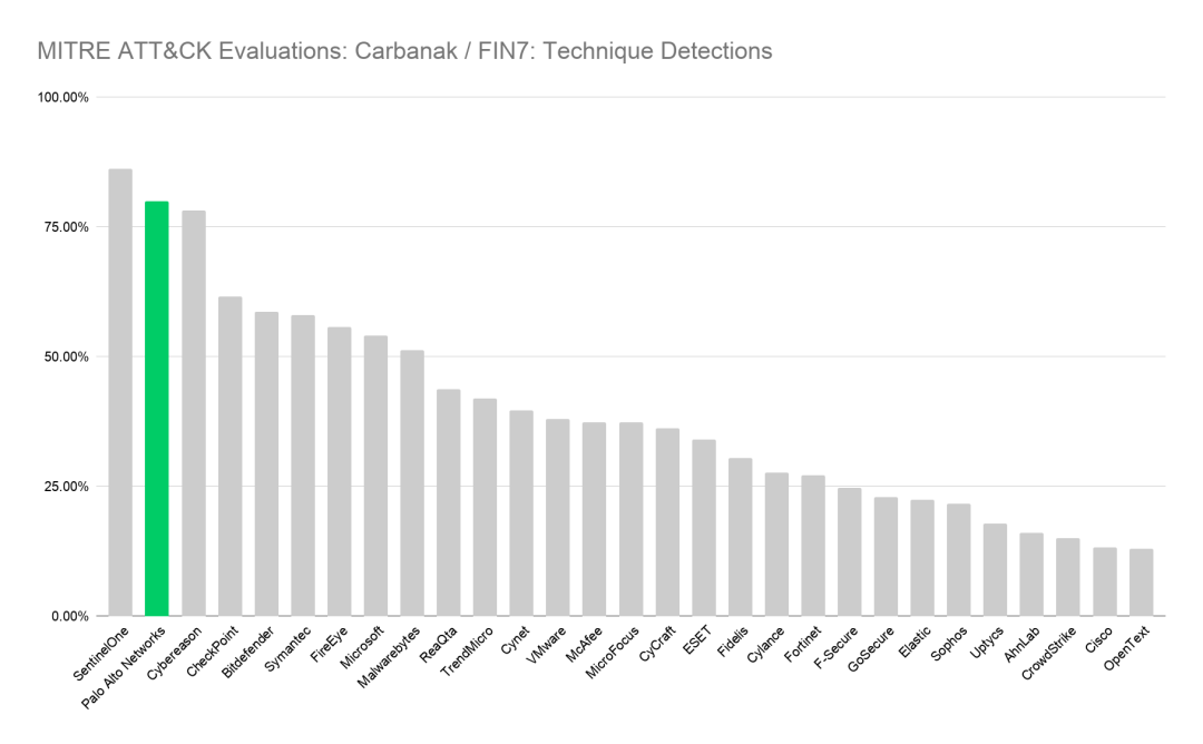在所有取得优异成绩的防御解决方案中,Cortex XDR的检测率最高。