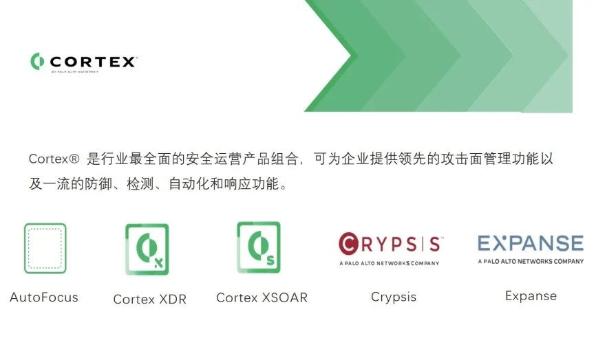 Palo Alto Networks Cortex全系通过高级机器学习和分析,使用经过验证的端点安全、检测、响应、自动化和攻击面管理来保护您的组织。打破安全孤岛,实现SOC现代化,让安全防护像交响乐一样和谐。