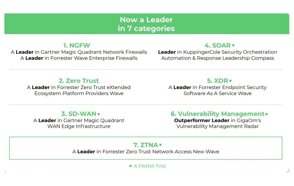 未来,Palo Alto Networks(派拓网络)将继续用丰富的优秀的产品及解决方案经受住市场考验,不负肯定与认可,用实力铸写“全球网络安全领导者”。