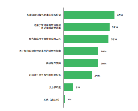 企业可能还希望寻找机会获得能够降低自动化复杂程度的解决方案,例如提供预构事件响应剧本的工具。我们具备实现更高水平自动化的可能性,这很可能成为保障业务运营安全的不可协商要求。挑战则在于接受变更并努力使其成为现实。