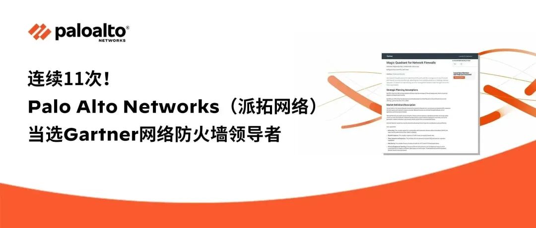 日前,Gartner发布2022年网络防火墙魔力象限报告《Magic Quadrant for Network Firewalls, 2022》,Palo Alto Networks(派拓网络)凭借平台级安全方法和为客户提供一流网络安全的能力,又一次当选该报告“领导者象限”。这已经是Palo Alto Networks(派拓网络)连续第11次当选领导者,其网络安全的实力和稳定提升的能力可见一斑。